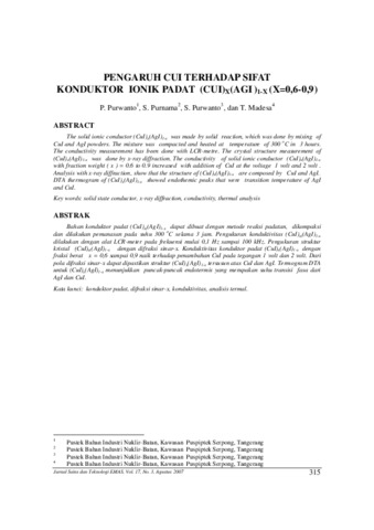 Purwanto, P and Purnama, Safei and Purwanto, Setyo and Madesa, Tria (2007) PENGARUH CUI TERHADAP SIFAT KONDUKTOR IONIK PADAT (CUI)X(AGI )1-X (X=0,6-0,9). Jurnal Sains dan Teknologi EMAS, 17 (3). pp. 315-322.