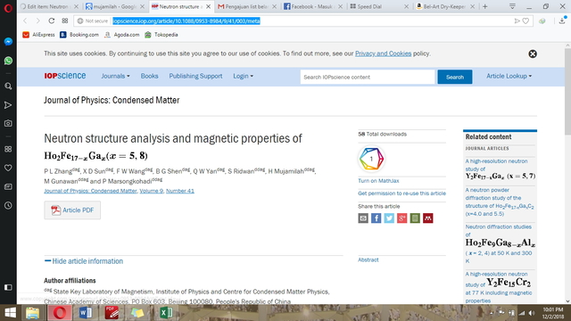 Zhang, P L and Sun, X D and Wang, F W and Shen, B G and Yan, Q W and Ridwan, S and Mujamilah, H and Gunawan, M and Marsongkohadi, P (1999) Neutron structure analysis and magnetic properties of. In: IOP Conference Series: Materials Science and Engineering.