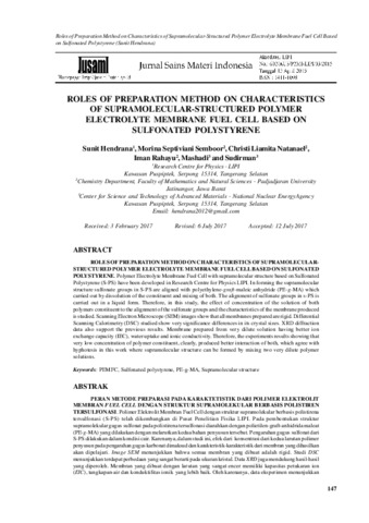 Hendrana, Sunit and Septiviani Semboor, Morina and Liamita Natanael, Christi and Rahayu, Iman and mashadi, mashadi and sudirman, sudirman (2017) ROLES OF PREPARATION METHOD ON CHARACTERISTICS OF SUPRAMOLECULAR-STRUCTURED POLYMER ELECTROLYTE MEMBRANE FUEL CELL BASED ON SULFONATED POLYSTYRENE. Jurnal Sains Materi Indonesia, 18 (04). pp. 147-154. ISSN 1411-1098