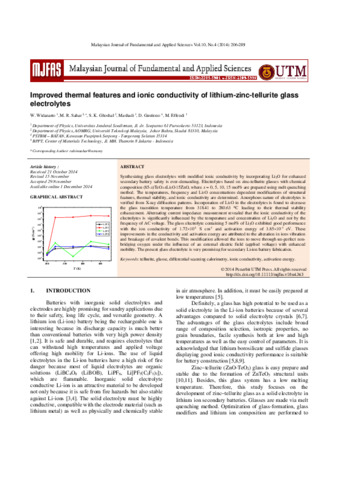 Widanarto, Wahyu and Sahar, M. R. and Ghoshal, S. K. and Mashadi, Mashadi and Gustiono, D. and Effendi, M. (2015) Improved thermal features and ionic conductivity of lithium-zinc-tellurite glass electrolytes. Malaysian Journal of Fundamental and Applied Sciences, 10 (4). ISSN 2289-5981
