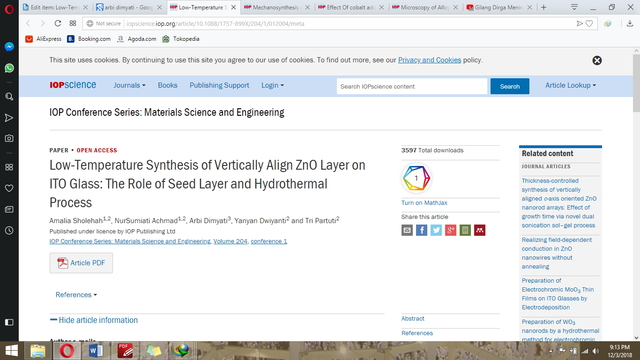 Sholehah, Amalia and Achmad, NurSumiati and Dimyati, Arbi and Dwiyanti, Yanyan and Partuti, Tri (2017) Low-Temperature Synthesis of Vertically Align ZnO Layer on ITO Glass: The Role of Seed Layer and Hydrothermal Process. In: IOP Conference Series: Materials Science and Engineering.