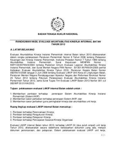 Inspektorat, INSP (2013) Laporan Evaluasi Akuntabilitas Kinerja Internal BATAN Tahun 2013. Project Report. Inspektorat, Jakarta. (Unpublished)