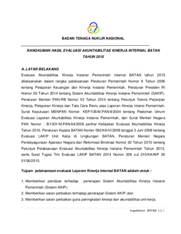 Inspektorat, INSP (2015) Laporan Evaluasi Akuntabilitas Kinerja Internal BATAN Tahun 2015. Project Report. Inspektorat, Jakarta. (Unpublished)