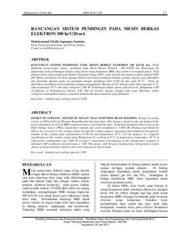 dilakukan perancangan sistem pendingin pada Mesin Berkas Elektron 300 keV/20 mA. Rancangan ini