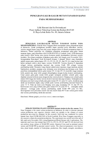Daerah Nusa Tenggara Barat merupakan sentra penanaman kapas di Indonesia. Untuk peningkatan produksi kapas nasional perlu dihasilkan varietasvarietas unggul kapas yang baru dan sesuai dengan iklim di daerah penanaman kapas di Indonesia. Dalam penelitian ini, dilakukan pengujian penanaman galur-galur mutan tanaman kapas yang dihasilkan oleh PATIR-BATAN di Lombok Utara, NTB khususnya pada kondisi iklim kering atau musim kemarau untuk mendapatkan informasi potensi produksi. Percobaan pengujian dilakukan pada akhir Juli hingga awal November 2011. menggunakan Rancangan Acak Kelompok dengan 4 ulangan. Materi yang digunakan adalah empat galur mutan kapas (CN 1A, CN 2A, CN 2C, dan CN 4A) yang berasal dari