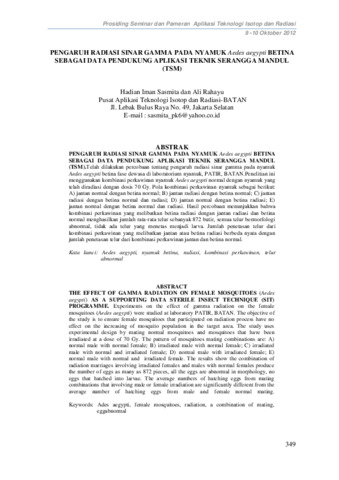 Telah dilakukan percobaan tentang pengaruh radiasi sinar gamma pada nyamuk Aedes aegypti betina fase dewasa di laboratorium nyamuk, PATIR, BATAN.Penelitian ini menggunakan kombinasi perkawinan nyamuk Aedes aegypti normal dengan nyamuk yang telah diradiasi dengan dosis 70 Gy. Pola kombinasi perkawinan nyamuk sebagai berikut: