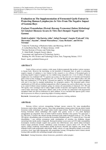 Mukh, Syaifudin and Sasmito, Wulyoadi (2017) Evaluation on The Supplementation of Fermented Garlic Extract in Protecting Human Lymphocytes In Vitro From The Negative Impact of Gamma-Rays. Jurnal Ilmiah Aplikasi Isotop dan Radiasi, 13 (2). pp. 115-122. ISSN 1907-0322