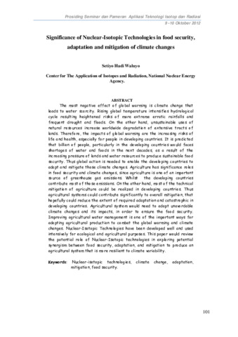 Waluyo, Setiyo Hadi (2012) Significance of Nuclear-Isotopic Technologies in food security, adaptation and mitigation of climate changes. In: Prosiding Seminar dan Pameran Aplikasi Teknologi Isotop dan Radiasi 9 - 10 Oktober 2012, 9-10 Oktober 2012, jakarta.