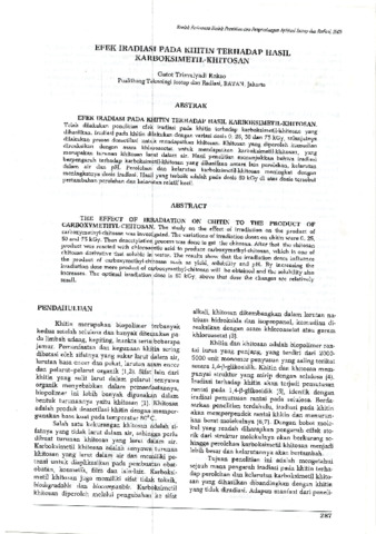 Rekso, Gatot Trimulyadi (2003) Efek Radiasi pada Khitin Terhadap Hasil Karbosimetil-Khitosan. In: Risalah Pertemuan Ilmiah Penelitian dan Pengembangan Aplikasi Isotop dan Radiasi, 2003, 2003, Jakarta.