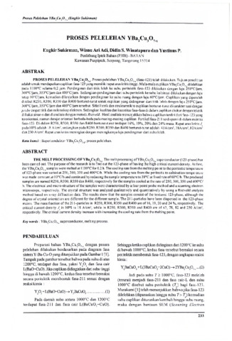 Sukirman, Engkir and Adi, Wisnu Ari and Winatapura, Didin S and Purwamargapratala, Yustinus (2004) Proses Pelelehan YBa2Cu3O7-x. In: Pertemuan IImiah IImu Pengetahuan dan Teknologi Bahan 2004, 7 September 2004, Serpong.