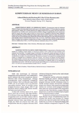 Hindasyah, Achmad and Bambang, H. P and Eko, Y.P and Rusmaryanto, Rusmaryanto (2008) KOMPUTERISASI MESIN UJI KEKERASAN BAHAN. In: Pertemuan Ilmiah Iptek Bahan 2008, 4 November 2008, Gedung DRN, Kawasan Puspiptek, Serpong.