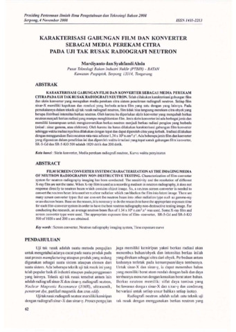 Mardiyanto, Mardiyanto and Ahda, Syahfandi (2008) KARAKTERISASI GABUNGAN FILM DAN KONVERTER SEBAGAI MEDIA PEREKAM CITRA PADA UJI TAK RUSAK RADIOGRAFI NEUTRON. In: Pertemuan Ilmiah Iptek Bahan 2008, 4 November 2008, Gedung DRN, Kawasan Puspiptek, Serpong.