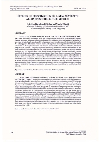 Jahja, A.K and Silalahi, Marzuki and Effendi, Nurdin (2008) EFFECTS OF SENSITIZATION ON A NEW AUSTENITE ALLOY USING DIELECTRIC METHOD. In: Pertemuan Ilmiah Iptek Bahan 2008, 4 November 2008, Gedung DRN, Kawasan Puspiptek, Serpong.