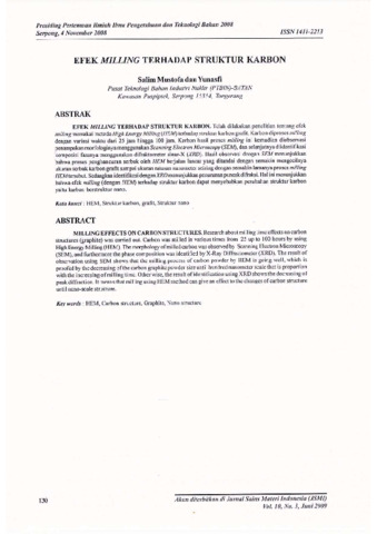 Mustofa, Salim and Yunasfi, Yunasfi (2008) Efek Milling terhadap Struktur Karbon. In: Pertemuan Ilmiah Iptek Bahan 2008, 4 November 2008, Gedung DRN, Kawasan Puspiptek, Serpong.