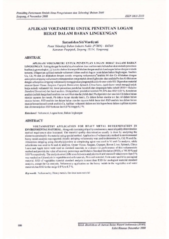 Saryati, Saryati and Wardiyati, Siti (2008) Aplikasi Voltametri untuk Penentuan Logam Berat dalam Bahan Lingkungan. In: Pertemuan Ilmiah Iptek Bahan 2008, 4 November 2008, Gedung DRN, Kawasan Puspiptek, Serpong.