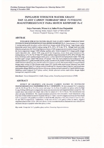 Purwanto, Setyo and Adi, Wisnu Ari and Mustofa, Salim and Mujamilah, Mujamilah (2008) Pengaruh Struktur Matrik Grafit dan Glassy Carbon terhadap Sifat Tunneling Magnetoresistance pada Sistem Komposit Fe-C. In: Pertemuan Ilmiah Iptek Bahan 2008, 4 November 2008, Gedung DRN, Kawasan Puspiptek, Serpong.