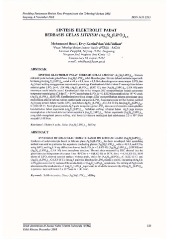 Ihsan, M. and Kartini, E. and Yulizar, Y. (2008) Sintesis Elektrolit Padat Berbasis Gelas Lithium (Ag2S)x(LiPO3)1-x. In: Pertemuan Ilmiah Iptek Bahan 2008, 4 November 2008, Gedung DRN, Kawasan Puspiptek, Serpong.