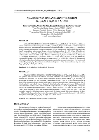 Sarwanto, Yosef and Adi, Wisnu Ari and Sukirman, Engkir and Manaf, Azwar (2012) ANALISIS FASA BAHAN MAGNETIK SISTEM Ba1-XLaXO 6 Fe2O3 (0 < X < 0,7). In: Pertemuan Ilmiah Iptek Bahan 2012, 3 Oktober 2012, Serpong.