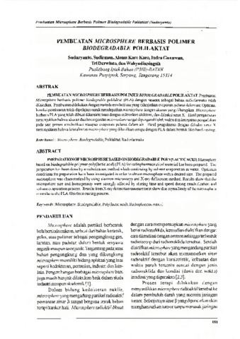 Sudaryanto, Sudaryanto and Sudirman, Sudirman and Karo Karo, Aloma and Gunawan, Indra and Darwinto, Tri and Wahyudianingsih, Wahyudianingsih (2003) Pembuatan Microsphere Berbasis Polimer Biodegradeable Polilaktat. In: Simposium Nasional Polimer IV, 8 Juli 2003, Jakarta.