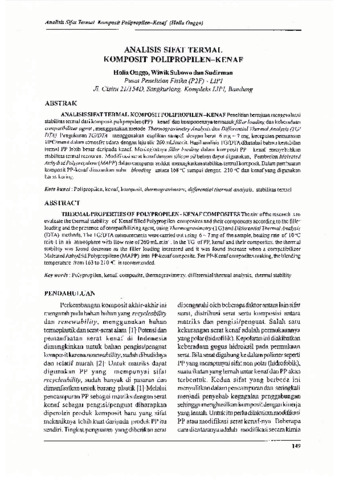Onggo, Holia and Subowo, Wiwik and Sudirman, Sudirman (2005) Analisis Sifat Termal Komposit Polipropilen-Kenaf. In: Simposium Nasional Polimer V, 22 Nopember 2005, Bandung.