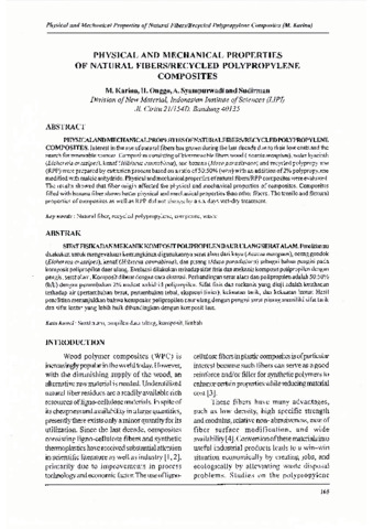 Karina, M and Onggo, H and Syampurwadi, A and Sudirman, S (2005) Physical and Mechanical Properties of Natural Fibers/Recycled Polypropylene Compostes. In: Simposium Nasional Polimer V, 22 Nopember 2005, Bandung.