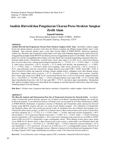 Suminta, Supandi (2009) Analisis Rietveld dan Pengukuran Ukuran Poros Struktur Sangkar Zeolit Alam. In: Seminar Nasional Hamburan Neutron dan Sinar X ke 7, 27 Oktober 2009, Serpong.