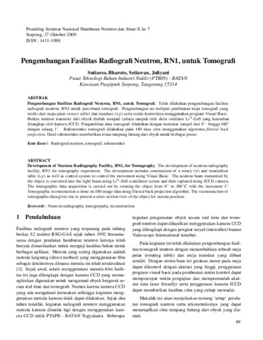 Sutiarso, Sutiarso and Setiawan, Setiawan and Juliyani, Juliyani (2009) Pengembangan Fasilitas Radiografi Neutron, RN1, untuk Tomografi. In: Seminar Nasional Hamburan Neutron dan Sinar X ke 7, 27 Oktober 2009, Serpong.