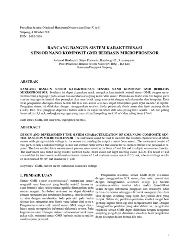 Hindasyah, Achmad and Purwanto, Setyo and Bambang, H. P and Rusmaryanto, Rusmaryanto (2011) RANCANG BANGUN SISTEM KARAKTERISASI SENSOR NANO KOMPOSIT GMR BERBASIS MIKROPROSESOR. In: Seminar Nasional Hamburan Neutron dan Sinar X ke 8, 4 Oktober 2011, Serpong.