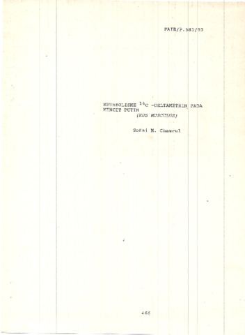 Chaerul, Sofni Marusin (1993) Metabolisme 14C-Deltametrin Pada Mencit Putih (Mus Musculus). Technical Report. PAIR BATAN, Jakarta.
