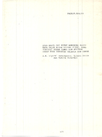 Sumanggono, Riyanti and Hakim, Lukman and Sutarman, Tatang (1993) Daya Hasil Dan Sifat Agronomi Beberapa Galur Mutan Kacang Hijau, Asal Iradiasi Sinar Gamma dan Neutron Cepat Pada Varietas Gelatik dan Camar. Technical Report. PAIR BATAN, Jakarta.