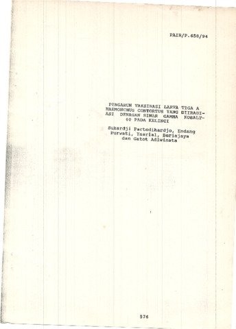 Partodihardjo, Sukardji and Purwati, Endang and Yasrial, Yasrial and Beriajaya, Beriajaya and Adiwinata, Gatot (1994) Pengaruh Vaksinasi Larva tiga A Haemonchus Contortus yang diiradiasi dengan sinar gamma Cobalt-60 pada kelinci. Technical Report. PAIR BATAN, Jakarta.