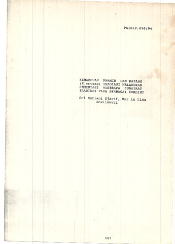 Syarief, Sri Hariani and Rosilawati, Maria Lina (1994) Kemampuan Khamir dan Kapang (E.Oryzae) iradiasi melakukan fermentasi beberapa Substrat iradiasi pada berbagai Kondisi. Technical Report. PAIR BATAN, Jakarta.