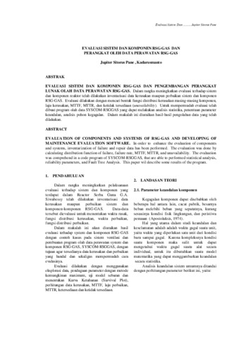 EVALUASI SISTEM DAN KOMPONEN RSG-GAS DAN PENGEMBANGAN PERANGKAT LUNAK OLAH DATA PERAWATAN RSG-GAS. Dalam rangka meningkatkan evaluasi terhadap sistem dan komponen reaktor telah dilakukan inventarisasi data kerusakan maupun perbaikan sistem dan komponen RSG-GAS. Evaluasi dilakukan dengan mencari bentuk fungsi distribusi kerusakan masing-masing komponen, laju kerusakan, MTTF, MTTR, dan ketidak tersediaan (unavailability). Untuk mempermudah evaluasi telah dibuat program olah data SYSCOM-RSGGAS yang dapat melakukan analisis statistika, penentuan parameter keandalan, analisis pohon kegagalan. Dalam makalah ini diuraikan hasil-hasil pengolahan data yang telah dilakukan.