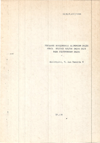 Sulistyati, M. and Hutabarat, Dameria (1990) Pengaruh Konsentrasi Alumunium Dalam media Seleksi Kultur Kalus padi pada Pertumbuhan kalus. Technical Report. PAIR BATAN, Jakarta.