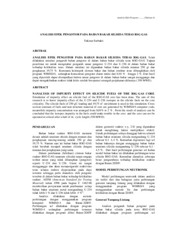 ANALISIS EFEK PENGOTOR PADA BAHAN BAKAR SILISIDA TERAS RSG-GAS. Telah dilakukan simulasi pengaruh bahan pengotor di dalam bahan bakar silisida teras RSG-GAS. Tujuan penelitian ini untuk mengetahui pengaruh unsur pengotor U-234 dan U-236 di dalam bahan bakar terhadap kritikalitas teras. Dalam simulasi ini digunakan bahan bakar silisida muatan 250 gr dan pengkayan 19,75 %. Konstanta kelompok elemen bakar dan bahan struktur teras dibangkitkan oleh program WIMSD/4, sedangkan konsentrasi pengotor diatur mulai dari 0,01 % hingga 2 %. Dari hasil yang diperoleh dapat disimpulkan bahwa unsur pengotor di dalam bahan bakar sangat menggangu dan dapat mengakibatkan reaktor tidak kritis setelah beroperasi setengah perjalanan siklusnya ( 350 MWD).