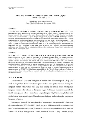Surian Pinem, SP and Tagor Malem Sembiring, TMS (2006) ANALISIS DINAMIKA TERAS SILISIDA KERAPATAN 4,8 gU/cc REAKTOR RSG-GAS. In: PROSIDING HASIL PENELITIAN PRSG.