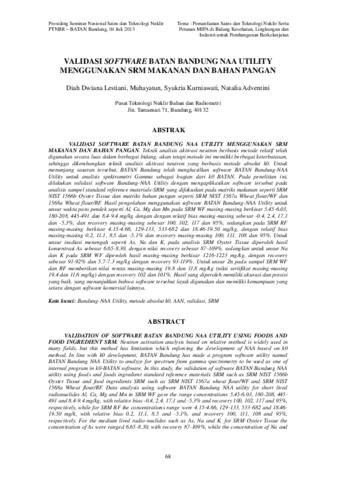 dilakukan validasi software Bandung-NAA Utility dengan mengaplikasikan software tersebut pada analisis sampel standard reference materials-SRM yang difokuskan pada matriks makanan seperti SRM NIST 1566b Oyster Tissue dan matriks bahan pangan seperti SRM NIST 1567a Wheat flour/WF dan 1568a Wheat flour/RF. Hasil pengolahan menggunakan software BATAN Bandung-NAA Utility untuk