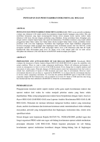 PENYIAPAN DAN PEMUTAKHIRAN DOKUMEN LAK RSG-GAS. PRSG secara periodik melakukan evaluasi atas dokumen LAK untuk menilai kesesuaiannya dengan kondisi lapangan yang terkini. Bila ada modifikasi komponen yang dapat mempengaruhi kinerja sistem ataupun sistem operasi reaktor maka dokumen LAK harus disesuai dengan perubahan yang dilakukan. Setiap perubahan harus dilengkapi pula dengan analisis ataupun kajian-kajian dari aspek keselamatannya. Perubahan mendasar yang terjadi adalah penggantian bahan bakar reaktor dari bahan bakar oksida menjadi bahan bakar silisida, perubahan format penulisan LAK serta data lingkungan. Perubahan data lingkungan belum dapat dilakukan sebagaimana mestinya mengingat untuk mendapat data lingkungan harus melibatkan instansi dari luar BATAN. Untuk mengatasi masalah ini, BAPETEN telah menyetujui bahwa revisi LAK khususnya pada Bab III Tapak Karakteristik akan diselesaikan pada revisi 10. Status revisi LAK sampai pada saat ini telah selesai dikerjakan dan dokumen LAK telah dikirim ke BAPETEN untuk mendapat persetujuan.