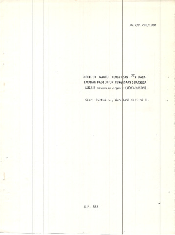 S., Sakri Ischak and H., Nani Kartini (1988) Memilih Waktu Pemberian 32P Pada Tanaman Padi Untuk Penandaan Serangga Ganjur Orseolis Oryzae (WOOD-MASON). Technical Report. PAIR BATAN, Jakarta.