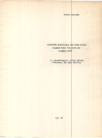 Laksminingpuri, Neneng and Abidin, Zainal and Indrojono, Indrojono and Martinus, Agus (1988) Penentuan Klasifikasi Air Tanah Dengan Diagram Paper Trilinier dan Diagram Stiff. Technical Report. PAIR BATAN, Jakarta.