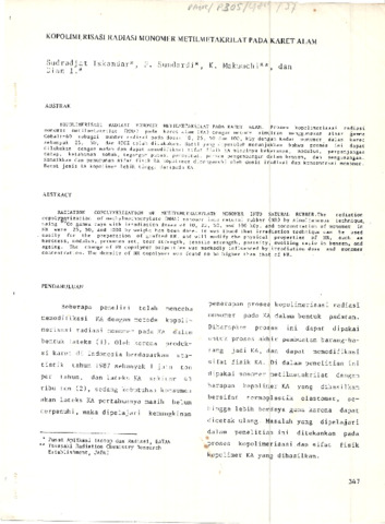 Iskandar, Sudradjat and Sundardi, F. and Makuuchi, Keizo and Iramani, Dian (1988) Kopolimerisasi Radiasi Monomer Metilmetakrilat Pada Karet ALam. Technical Report. PAIR BATAN, Jakarta.