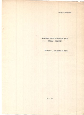 S., Harsono and Maha, Munsiah (1988) Pengaruh Bahan Pengemasan pada Mangga Iradiasi. Technical Report. PAIR BATAN, Jakarta.