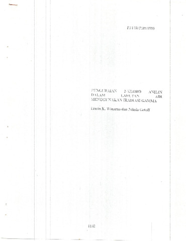 Winarno, Ermin Katrin and Getoff, Nikola (1999) Penguraian 2-kloro Anilin Dalam Larutan Air Menggunakan Iradiasi Gamma. Technical Report. PAIR BATAN, Jakarta.