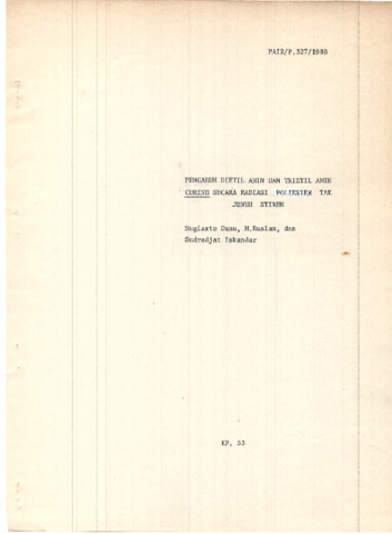 Sugiarto, Danu and Ruslan, M. and Iskandar, Sudrajat (1988) Pengaruh Dietil Amin dan Trietil Amin Curing Secara Radiasi Polieter tak Jenuh Stiren. Technical Report. PAIR BATAN, Jakarta.
