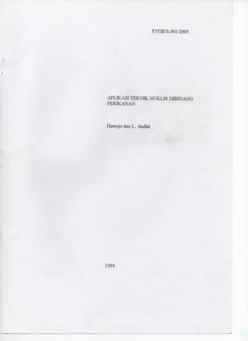 Harsojo, Harsojo and Andini, L.S. (2003) Aplikasi Teknik Nuklir Dibidang Perikanan. Technical Report. PAIR BATAN, Jakarta.