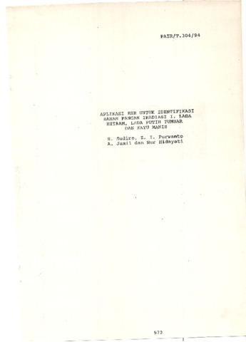 Sudiro, Sutjipto and Purwanto, Zubaidah Irawati and Jamil, A. and Hidayati, Nur (1994) Aplikasi ESR untuk Identifikasi Bahan Pangan Iradiasi. I Lada Hitam, Lada Putih, Ketumbar dan Kayu Manis. Technical Report. PAIR BATAN, Jakarta.