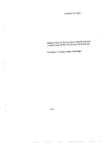 S., Herwinarni and Utama, Marga and Marsongko, Marsongko (2003) Perhitungan Tekno ekonomi Produksi Lateks Pekat Pravulkanisasi Radiasi. Technical Report. PAIR BATAN, Jakarta.