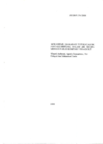 Andayani, Winarti and Sumartono, Agustin and Hidayati, Nur and Lindu, Muhammad (2003) Mekanisme Degradasi Fotokatalitik Pentaklorofenol dalam Air Menggunakan Komposit Tio2Zeolit. Technical Report. PAIR BATAN, Jakarta. (In Press)