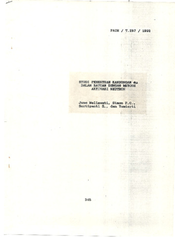 Mellawati, June and Gurusinga, Simon Petrus and Sadjirun, Surtipanti and Yumiarti, Yumiarti (1992) Studi Penentuan Kandungan Au dalam Batuan Dengan Metode Aktivasi Neutron. Technical Report. PAIR BATAN, Jakarta.