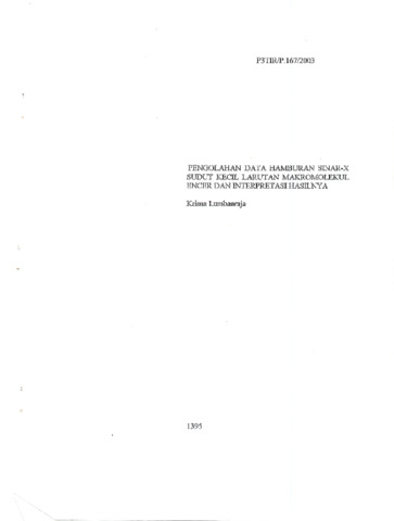 Lumbanraja, Krisna Murni (2003) Pengolahan Data Hamburan Sinar-X Sudut Kecil larutan Makromolekul Encer dan Interpretasinya. Technical Report. Pusat Aplikasi Isotop dan Radiasi, Jakarta.